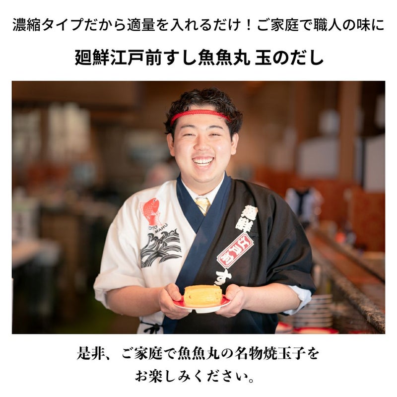 行列のできるグルメ回転寿司「魚魚丸」の 「名物焼玉子」をご家庭で! 「玉(ぎょく)のだし」でアツアツ・フワフワを! 【濃縮タイプ】廻鮮江戸前すし魚魚丸 玉のだし 3本